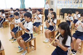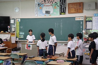 中央小学校の朝には、どのクラスも今月の歌「ゆかいに歩けば」の歌声が響いています。