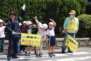 1年生は、交通指導員さんと一緒に学校の周りを歩き、信号や横断歩道の渡り方を教えていただきました。