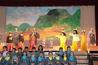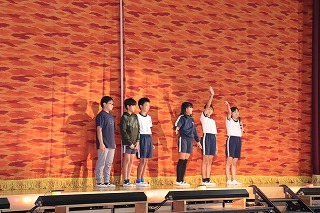 全校のみんなに見てもらう最初の本番。今までの練習の成果を出して台詞を大きな声で言ったり、学年の仲間と気持ちをそろえて歌ったり演奏したり、全校のみんなに届けました。