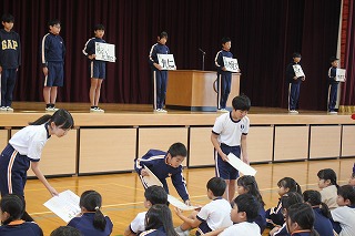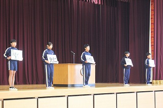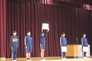 2025年11月7日 17時11分朝会がありました。校長先生から二つのお話がありました。一つ目は「あいさつ」について。「挨拶」という漢字は、「挨:押す」「拶:近づく」という意味で、そこから考えると「自分の心のスイッチを押して」あいさつをし、「あいさつをする自分」と「自分のまわりにいるたくさんの人」を幸せにしてほしいです。二つ目は、再来週に控えたマラソン大会に向けて、「自分をこえる」というお話でした。是非、自分の目標をもち、日々頑張っているランニングの成果を出せるよう、今の自分をこえられるように頑張っていきましょう。