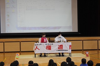本校では、本日、人権擁護委員の方に来ていただき、人権集会を行いました。