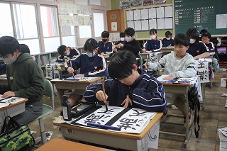 2026年1月8日 16時32分1~2時間目に書き初め大会が行われました。