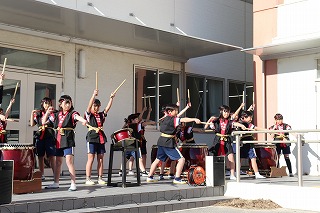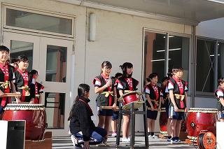 息の合った太鼓の演奏や振り付け、そして「ソーレ!」の声が、中央小に響きました。