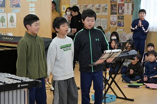 1月21日(水):中央小の春・音楽祭⑤ 2026年1月21日 07時59分 今日の発表は ① 元気いっぱい3人組 (合唱奏)合唱+合奏 ② SIE (合奏) ③ ポップコーン (合奏) ④ 雨のち虹色 (アンサンブル) でした。演奏後、たくさんの子どもたちが感想をいうことができました。