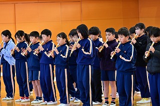 1月23日(金):中央の春・音楽祭⑥! 2026年1月23日 16時00分 今日の音楽祭は4年生の発表でした。 「楽しいマーチ」の手拍子でリズムアンサンブルと「オーラリー」のリコーダー演奏でした。 息の合ったアンサンブルと演奏を披露することができました。