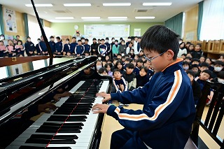 1月28日(水):中央の春・音楽祭⑧! 2026年1月28日 16時00分 今回で8回目となる音楽祭。 本日は、4人のピアノ独奏と1組のピアノ連弾でした。 今まで練習してきた成果をみんなの前では発表し、 見ていた児童から大きな拍手があがりました。