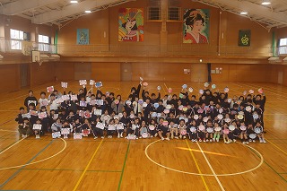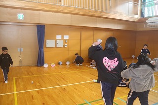 また、昨日ですが4年生は新聞紙を使って、豆まきをしました。