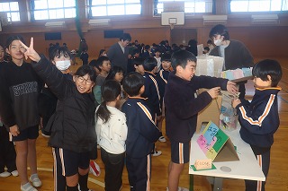 本日の招待客は1、4年生の子たちです。きぼうの子たちのいろいろなブースはどこも大盛況でした。体育館中がみんなの笑顔でいっぱいでした。明日は、2、3年生を招待するそうです。