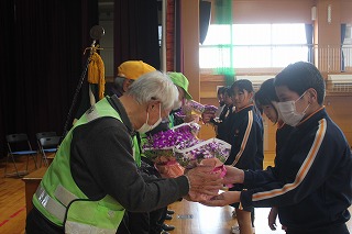 また、毎日子どもたちの登下校を見守ってくださる交通指導員さん、交通安全ボランテイアの皆さんに感謝の気持ちを伝えることができました。
