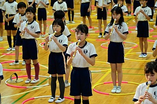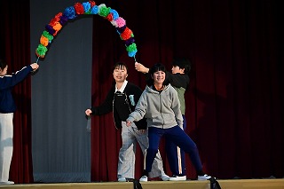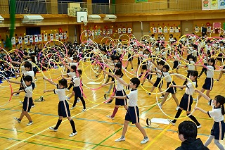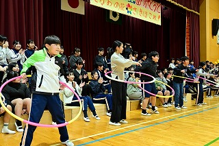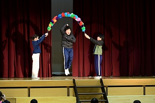 3年生は、3年前のフラフープの演技と替え歌のプレゼントを。