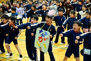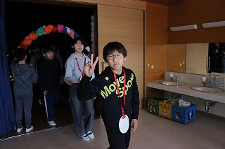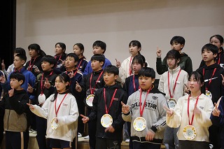 1年生は、ダンスとメダルのプレゼントを。