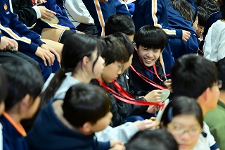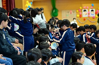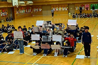 4年生は、6年間の思い出クイズのプレゼントを。