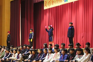 5年生は、幕間や会の進行などを通して感動と笑いのプレゼントを。