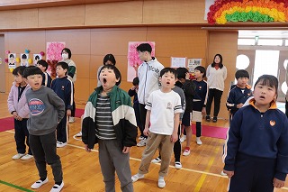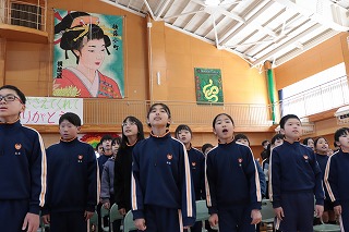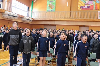 2026年3月17日 16時42分卒業式の全体練習のあと、4時間目に「全校で歌う会」を行いました。