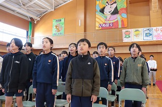 最後に全員で「校歌」を歌いました。体育館中に響く全校の歌声は、「なかよく、つよく、こんきよく」を目指して頑張ってきた中央っこそのものでした。