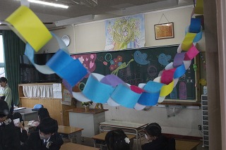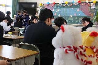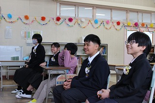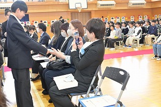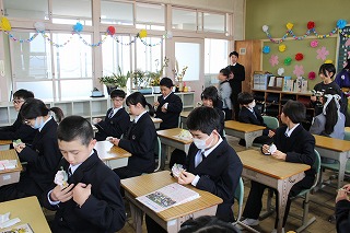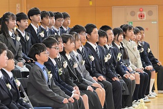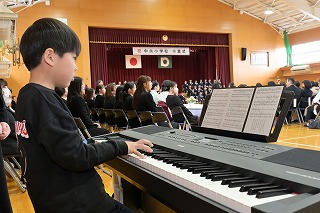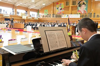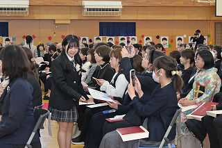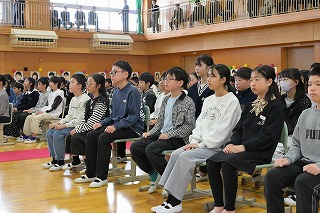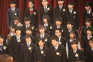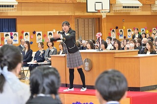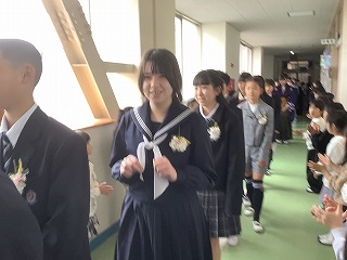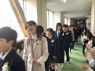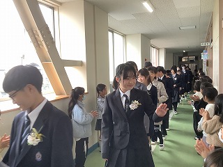 1~3年生が出席した歓送の会では、「きずな」と「校歌」を歌いながら卒業生を見送りました。