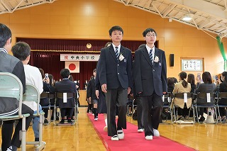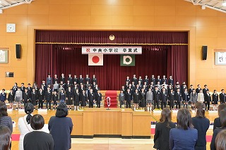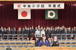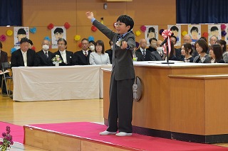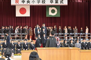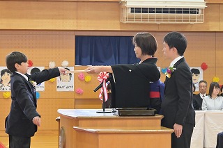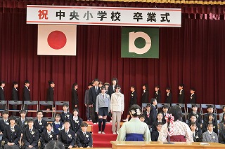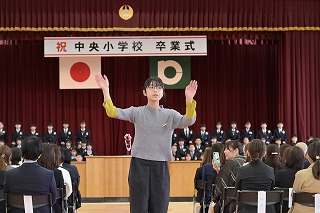 4・5年生が出席した卒業式では、卒業生が一人一人返事をし、卒業証書を手にしました。