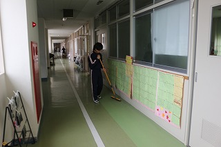 これまでお世話になった卒業生が気持ちよく卒業式を迎えられるように、体育館の周りや会場内の掃除、飾り付けをしました。